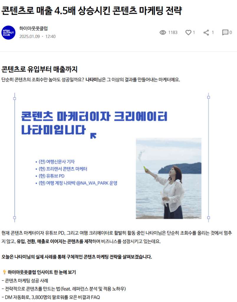 “콘텐츠마케팅으로 매출 300% 성장! 성공 사례와 실무 전략 공개”에 대한 1개의 생각